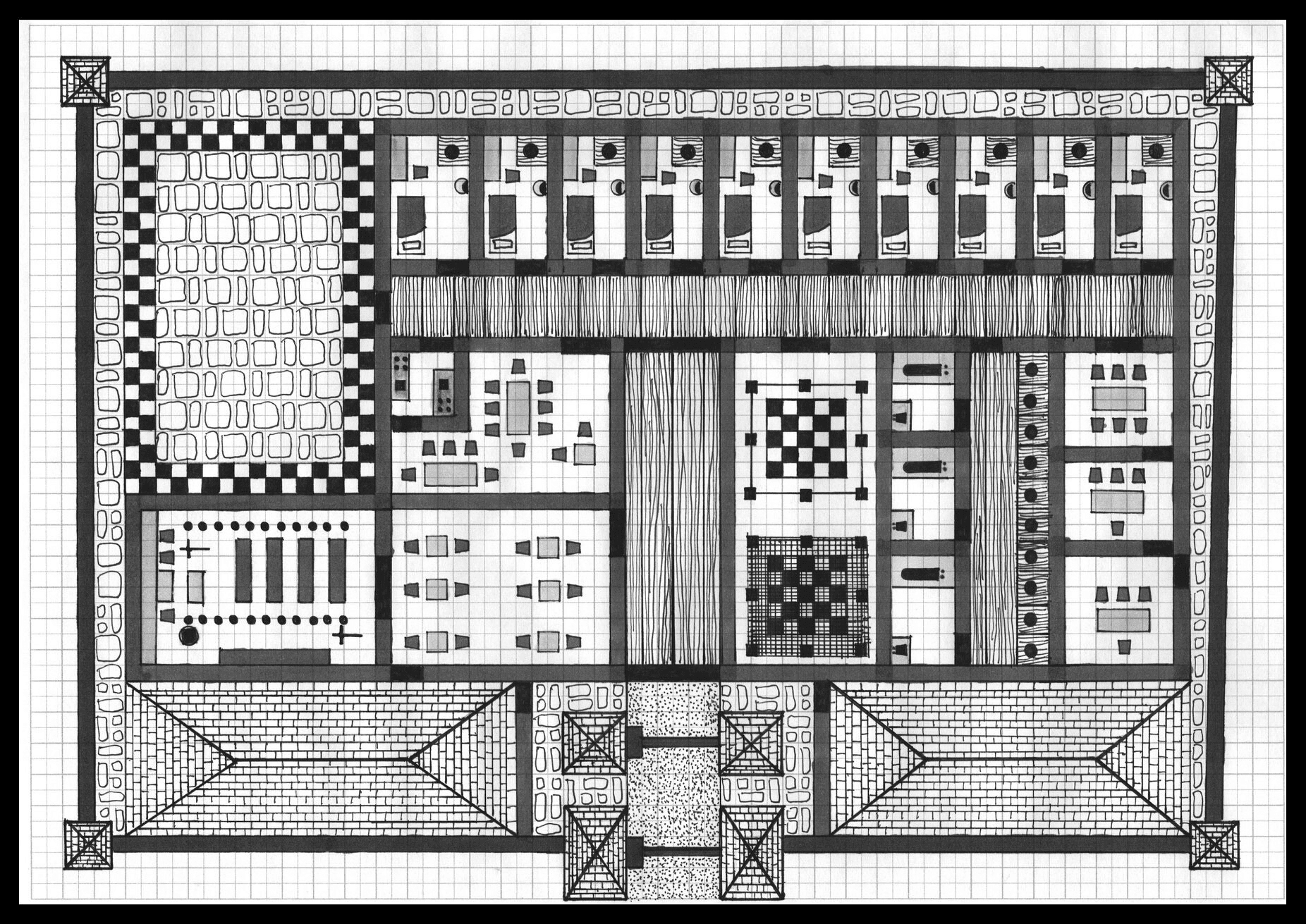 “Third, we maneuver around the back-side of the compound. We try to take out the guards in the two towers there. While I’d like to take them out at the same time, we only have one sniper. So, it would probably be one at a time. We can then try to breach or scale the wall. I’d like to scale it as the primary option. Once inside, we’ll try to finish off the other guard towers and assault the middle. I suppose we could set some explosives here at the front as a distraction, maybe even the boys, while the rest of us work the back.”